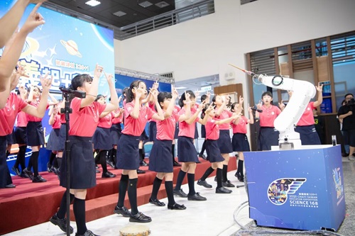 記者會開場表演由嘉義高工機械手臂結合宣信國小那音合唱團共同演出,展現科技與藝術跨界共融的教育亮點。現場亦邀請林森國小、北園國中、永慶高中、嘉義高工、南華大學、吳鳳科技大學、嘉義市女童軍會及農業部農業試驗所等八單位進行成果展示,透過趣味實驗、互動遊戲與生活科學應用,展現各校與單位對科學教育的創意與實踐,也讓大家提前感受到科學168的精彩魅力與教育能量。