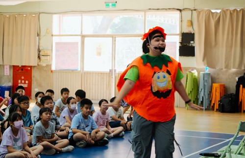 繪本搭配姐姐們的演出,將故事內容演給學生看,教導孩子認識情緒,並有效地處理情緒。