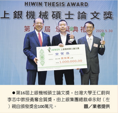 上銀碩士論文獎 台大教授王仁蔚李志中奪金質獎