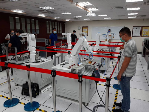 上銀科技捐贈的6台RA605-710-GB,都是現在業界正在使用的機型,最大運動半徑達710mm,重複精度可達0.02mm,透過程式規劃,可應用於上下料取放、組裝、去毛邊,檢測等自動化應用。