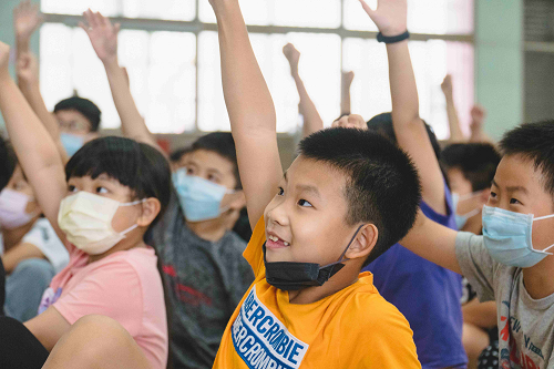 雨勢突然增強,但小朋友們熱情不減