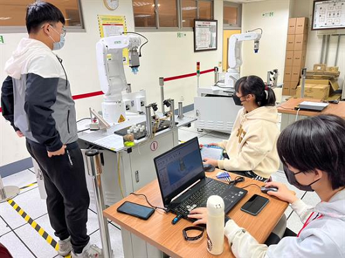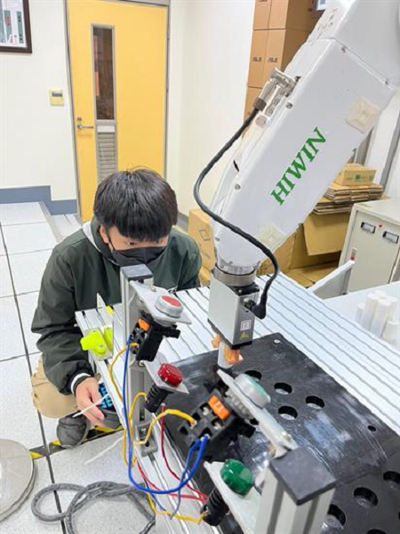 機器人系主任王建仁說明,該系是國內培育工業機器人技術人員的重要搖籃,從機器手臂操作、機器手臂維修、機台虛實整合到產線系統模擬而推及至工廠效能模擬,並結合物聯網及人工智慧,點線面鋪陳的課程規劃,讓學生嫻熟智慧製造所需技能,並大力推動證照輔導,協助學生在畢業前取得包括iPAS機器人工程師初階、中階等智慧製造自動化技術人員重要指標的專業證照,此外,更積極鼓勵學生參與學年及學期實習,使學生在畢業前即具備業界經驗,成為企業愛用的專業人才。