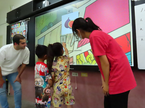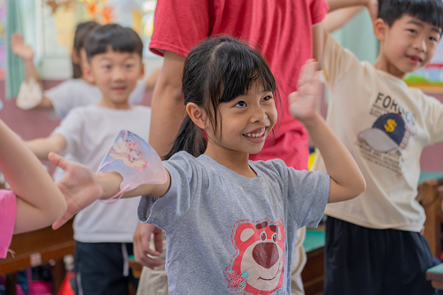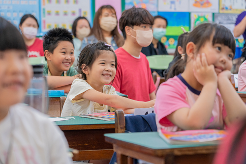 一年一度的家長觀摩日,不僅是家長們進入課堂了解孩子學習成效的時刻,也是計畫團隊向家長展示教學成果的重要機會。在課堂上,當外籍教師提出問題並邀請學生搶答時,學生們的手臂瞬間高高舉起,並熱情地大聲喊著 "Teacher me!",爭相參與回答。面對如此踴躍的情況,即便是經驗豐富的外籍教師也難以做出選擇,往往只能將這一「重責大任」交給計畫團隊。看著那一雙雙充滿渴望的眼神和高舉的小手,不禁讓人深刻感受到孩子們對英語學習的熱情與積極投入。