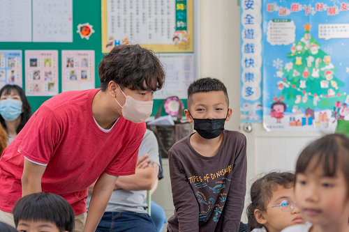 課堂上,教室裡的大哥哥、大姊姊會仔細聽我發音,和教我怎麼唸。